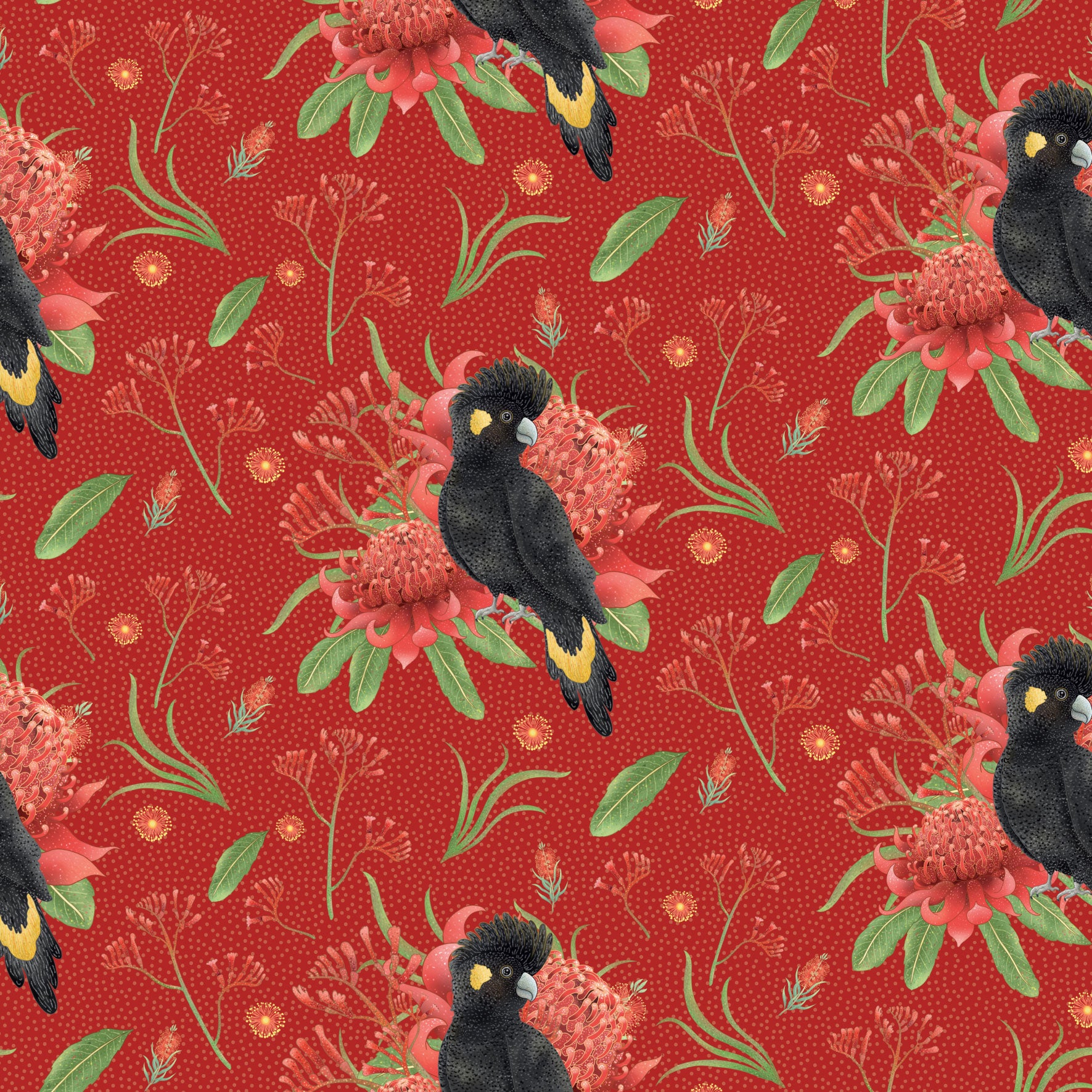 Jen Digital Art Christmas - Black Cockatoos and Aussie Flowers – Red