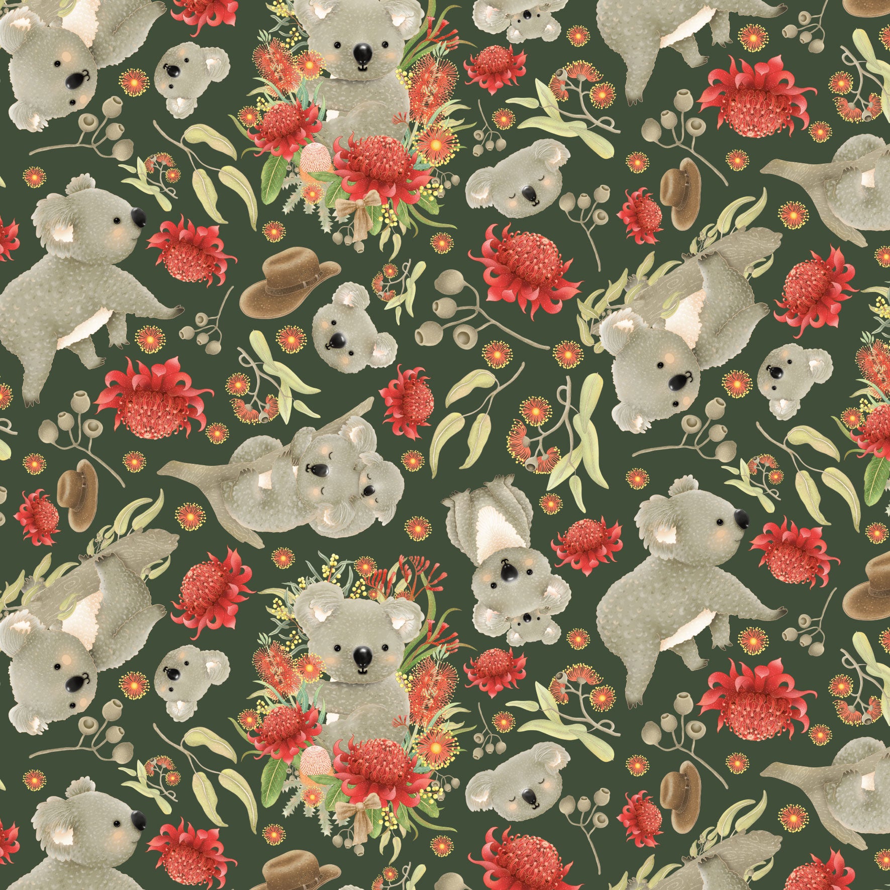Jen Digital Art Christmas - Koala, Joeys and Aussie Flowers – Green