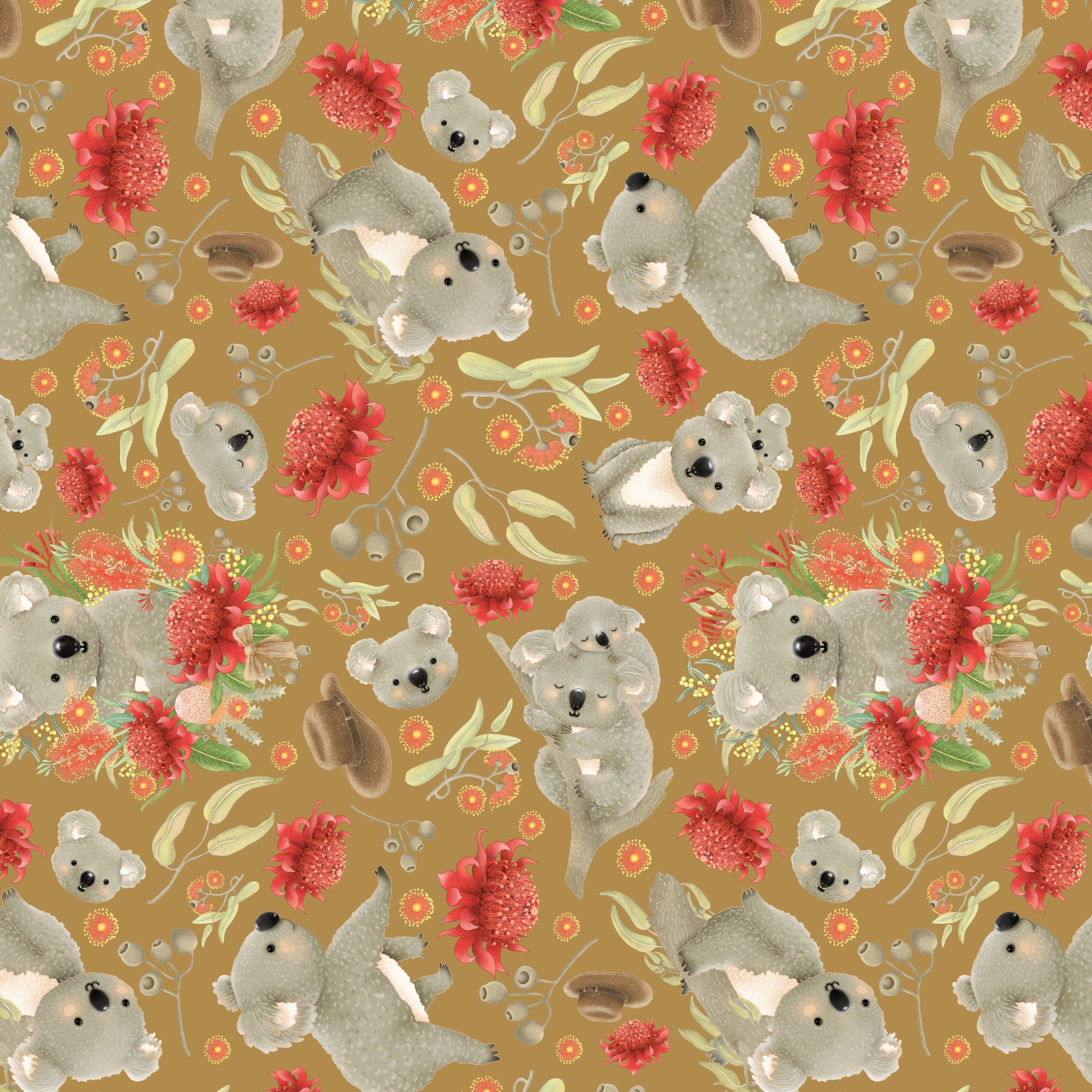 Jen Digital Art Koalas Joeys Australia Wildflowers (brown)